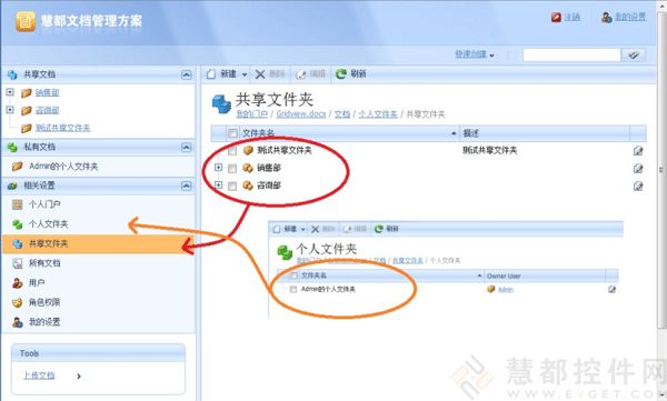 文档结构管理,管理员可定义层级目录结构,普通用户拥有专属的私有目录。