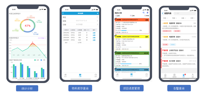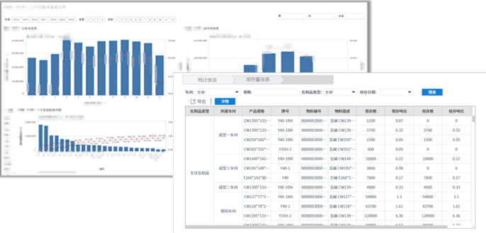 系统针对于计划排程提供报表分析功能,包括:计划、产能、物料、设备等方面的报表统计,以实现多维度的生产计划监控分析功能