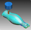 和5-Axis技术一起使用,3-Axis刀具轨迹可以容易的被转换为效率更高,表面光洁度更好的5-Axis刀具轨迹。此方法可以保持最佳的兼容点,并且允许短刀具在部件深加工时使用向远离模型的方向倾斜的方式来避免碰撞。