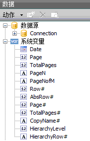 解决:FastReport其实已经我们内置了所有这些功能,可以在系统变量中找到,只需要简单的拖入Date就可以显示出当前日期,拖入PageN就可以显示页码等。