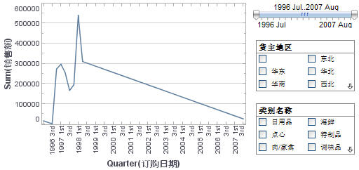 这是一个简单的分析类Dashboard,除了有数据和图像分析外,用户可以通过控件和在图表上的直接操作,来控制数据的显示,计算,过滤,和分组等等。