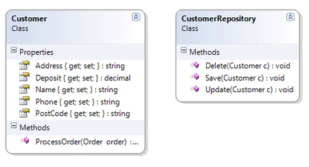 大家看看上面的Customer类,很多时候,我们都是这样的写的(其实就是Active Record的实现方式,后面我们会讲述企业架构设计会谈到)。