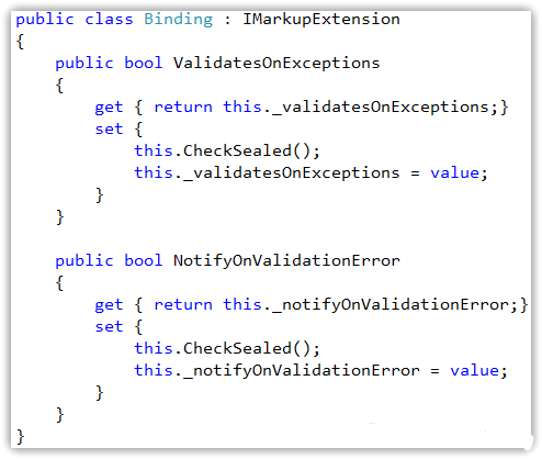 ValidatesOnExceptions:告诉绑定引擎当有异常发生时创建一个验证异常