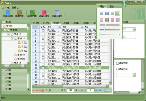 上图实现的是一个仿FoxMail的换肤控件的截图,其中实现了TreeView、Panel、DataGridView和ListBox的滚动条的换肤,下面介绍一下滚动条换肤的原来。