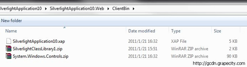 编译后的ClientBin中,SilverlightApplication10.xap包中不包含SilverlightClassLibrary1.dll, SilverlightClassLibrary1.dll 以SilverlightClassLibrary1.zip新式单独存在。