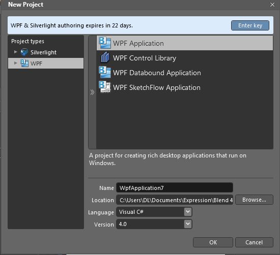 File——New Project,跳出如下窗口,选择WPF——WPFApplication—点击OK
