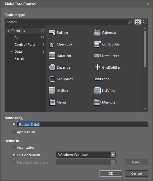 6.第五步结束后,会跳出一个窗口,如图7 ,选择Button,然后Name一栏自己命名,Define in一栏默认,然后点击OK。