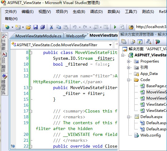 想使用ViewStateCompression的压缩和解压页面ViewState的功能,我们必须重写 System.Web.UI.Page 的 SavePageStateToPersistenceMedium() 和LoadPageStateFromPersistenceMedium() 方法。