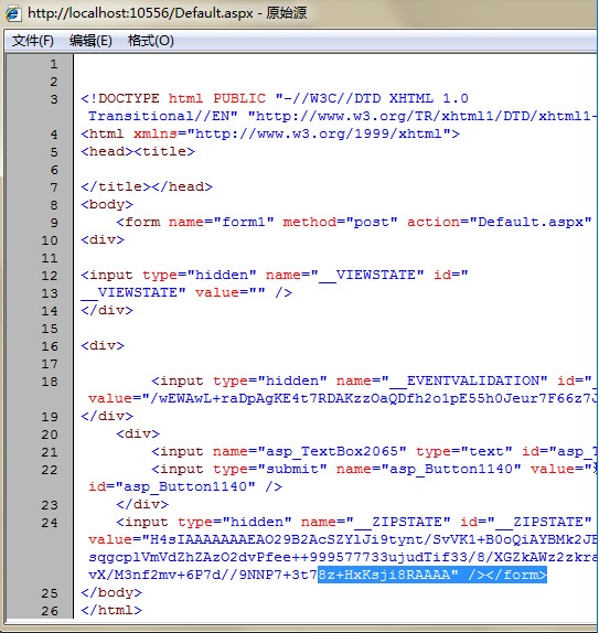 改写后我们可以从下图看到ViewState完全被删除了,而且传输到客户端的数据从1006B 减少 到750B,这在页面中很多数据源控件时,将提高了一定性能: