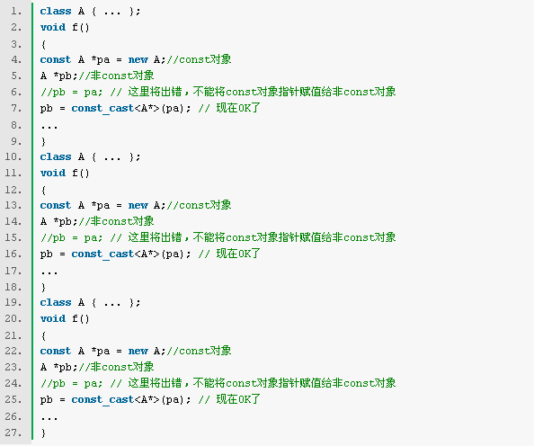 表达式const_cast<T*>(a)被用于从一个类中去除以下这些属性:const, volatile, 和 __unaligned.