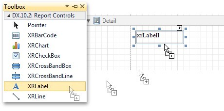 1、现在 Visual Studio 显示了新建报表的设计器 (在默认情况下,报表名称是 XtraReport1,并且在本课程中将使用此名称)。 注意,此报表派生于 XtraReport 类,该类是所有报表的基本类。 您可以发现,这种行为与新建派生于 Form 类的窗体的结果相类似。(为了继续进行报表创建,打开 工具箱 窗格 (例如通过按下 CTRL+ALT+X 组合键),然后选中 XRLabel 控件 (在 DX.10.2: Report Controls 标签页中),并且把它拖放到报表的 Detail 带区)。