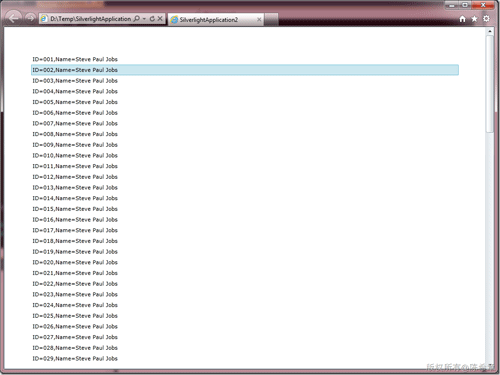 给大家看一个例子就明白了,下图是一个最简单的Silverlight程序,星空最火知名网站上面有一个列表,显示了100行数据。很显然,它会超过一页,按照正常的打印,大致有三页。(A4纸)