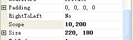 上面是ConvertTo的实现,如果转换的目标类型是string,我将Scope的两个属性转换成string类型,并且用一个“,”连接起来,这就是我们在属性浏览器里看到的表现形式,如图: