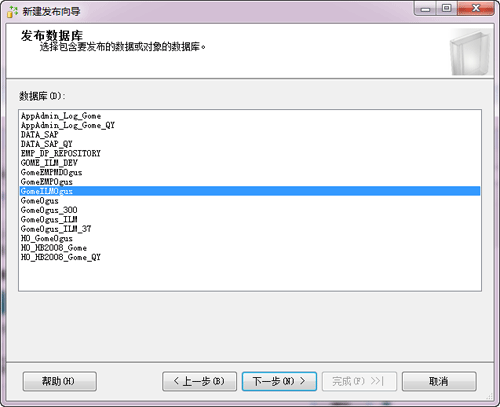 2、选择待发布的数据库。如下图: