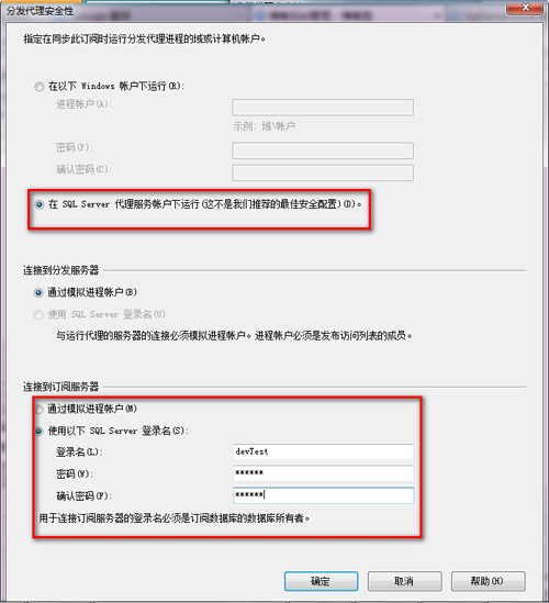 5、设置分发代理的安全性。如下图: