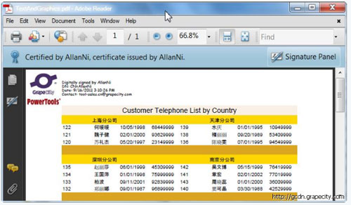 上述生成的报表文件在Acrobat Reader中显示如下(左上角是数字签名):