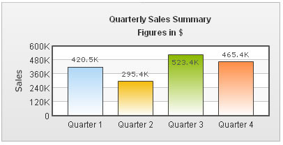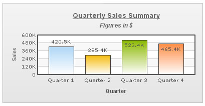 FusionCharts 允许你为chart配置标题、子标题、x轴标题和y轴标题,可以为它们指定字体、样式和动画效果等。