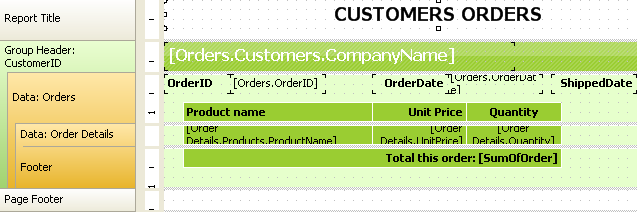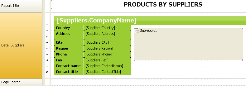 FastReport.NET是一个优秀的报表生成器。有13个类型区域:报表标题、报表摘要、页眉、页脚、列标题、列页脚、数据头、数据、数据页脚、组页眉、组页脚、子报表、覆盖。另外,它还完全支持子报表。广泛的类型区域使你可以方便地创建任何的报表:列表,主明细,分组,多列,主详细细节以及更多。
