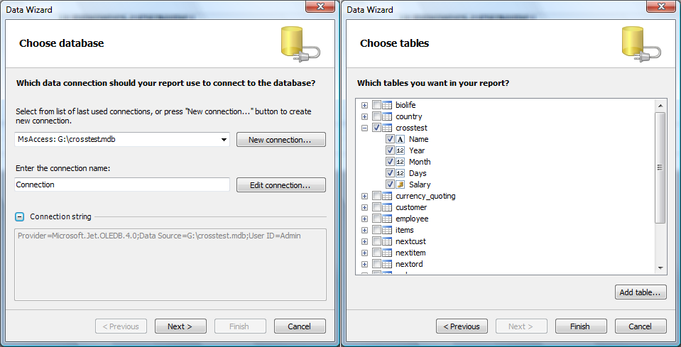 报表可以包含数据源(表,查询,数据库连接)。因此,您不仅可以使用应用程序定义的数据集,还连接到任何数据库,使用表和在报表内部进行查询。