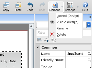 所有你可以在Element Explorer中的组执行的操作或右键单击菜单也可以通过访问Dundas Dashboard工具条来执行,如图所示: