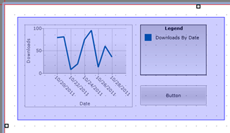 当在设计时将某些控件组合在一起,一个对应的组项就会生成到Element Explorer中。当某个组在仪表盘画板上被选中时,它的边框就会显示为虚线。如图所示: