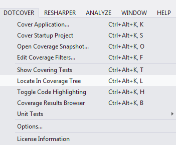 dotCover 2.0引入了一个快捷方式,让你从Visual Studio文本编辑器中的一个光标定位到dotCover的Coverage Tree相应的代码。
