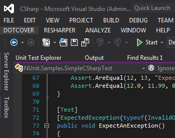 即使你没有安装ReSharper,你也可以使用dotCover去管理、运行和分析单元测试的覆盖。如果你安装了这两个产品,你可以任选一个你想要的单元测试运行器。