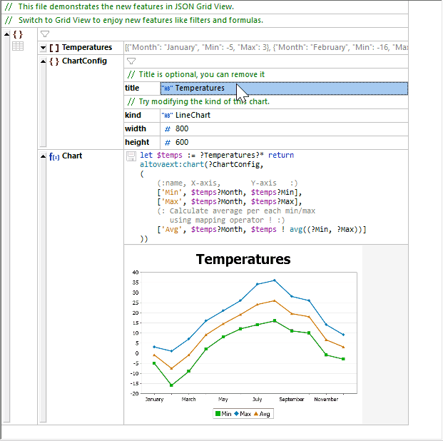除了使用XQuery处理JSON网格中的公式外,还可以使用它从数值JSON数据创建图表。