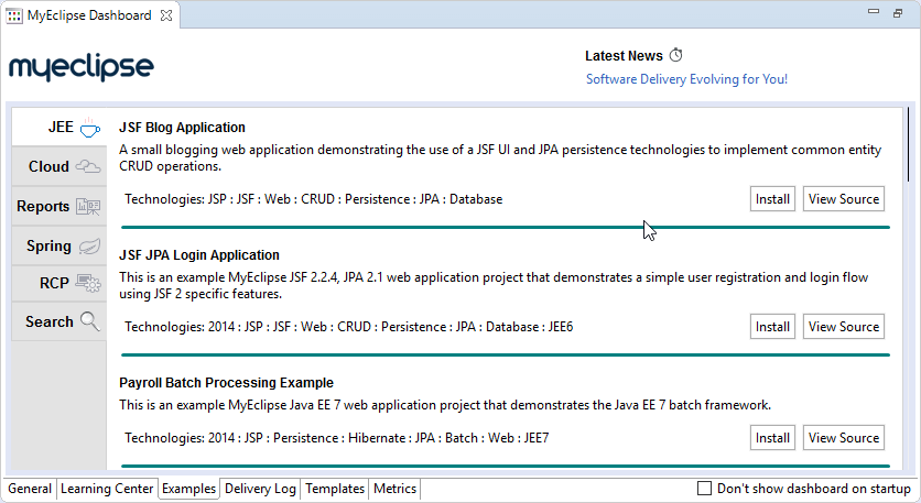 概述:无论是开始新项目、在源代码管理中处理项目,还是寻找用来学习的示例项目,MyEclipse Dashboard都是您项目的理想起点。更多教程请浏览MyEclipse中文网!