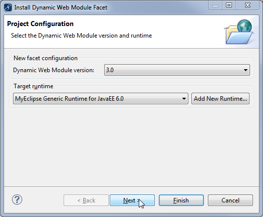 2、选择动态Web模块版本和目标运行时,然后单击“下一步”。