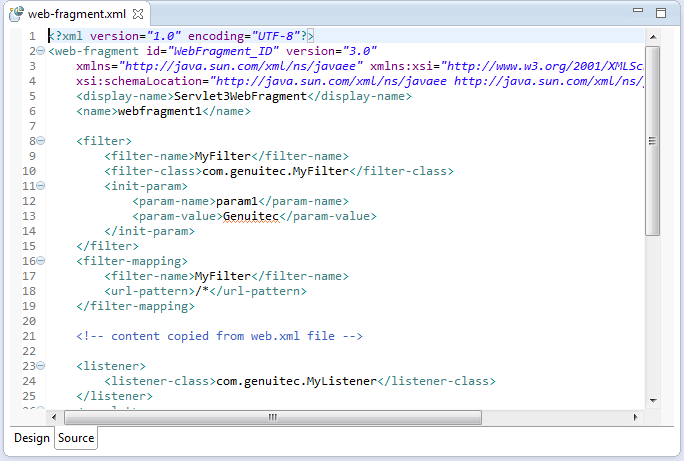 Web片段描述符包含与web.xml相同的信息,但有以下附加要求:
