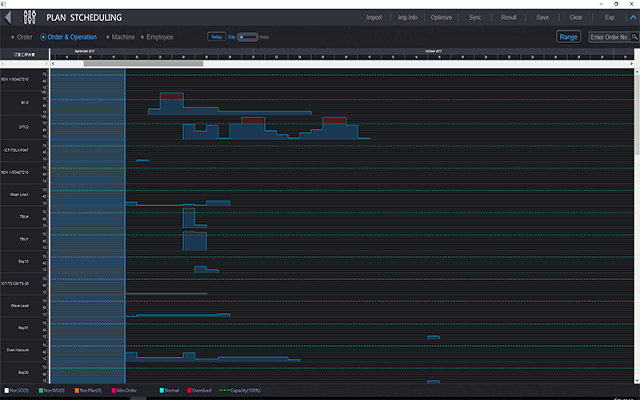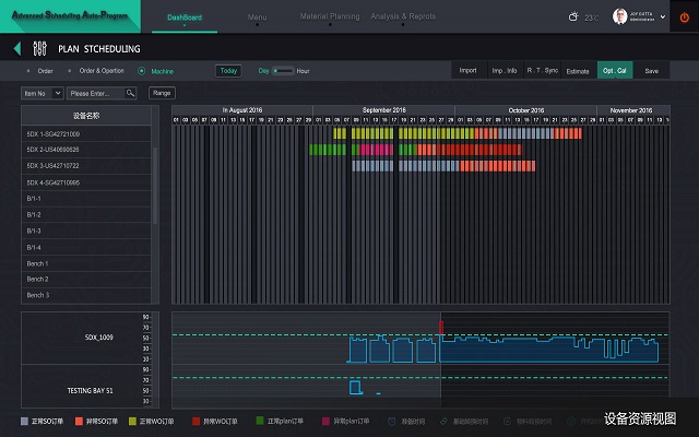 而所有这些可能会遇到的问题和困扰在导入EV-APS系统之后都将得以轻松解决,EV-APS系统中的生产排程模块能够根据物流管理、生产管理中的实时信息,在用户自定义规则的基础上,协助计划人员安排作业、投产、备料,提示计划人员可行的方案,缩小计划人员的选择范围,提高计划的效率并减轻计划人员的负担。