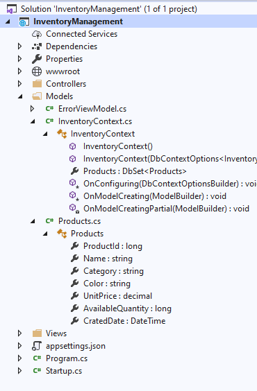 在我们的示例中,将创建Products类和Inventory上下文类。