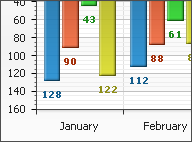 | Multiple Axes feature allows to display several scales when dealing with data. Each axis can be customized using its properties to meet your needs. You can have as many axes as you want. Any data series can be linked to any axis, you can compare different series using different scales or display different scales for the same data. Any axis can be positioned and completely customized. |
