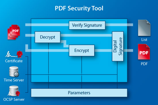 The 3-Heights™ PDF Security Tool enables the application of digital signatures to PDF documents and their subsequent protection through setting passwords and user authorizations.