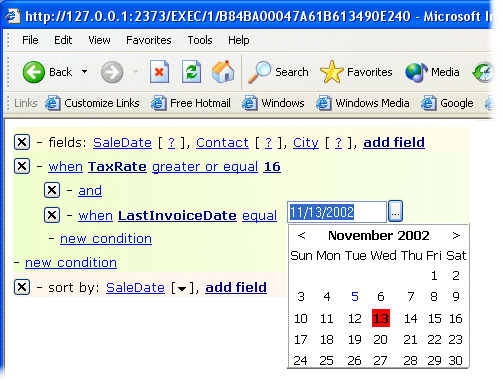 IntraWeb Query Builder provides an easy way to give users access to powerfull queries without requiring any knowledge about SQL. Users can setup complex queries in an almost natural language way with IntraWeb Query Builder. Dropping the component TTIWQueryBuilder on the form and connect to the database opens the visual and full client side query power of IntraWeb Query Builder.