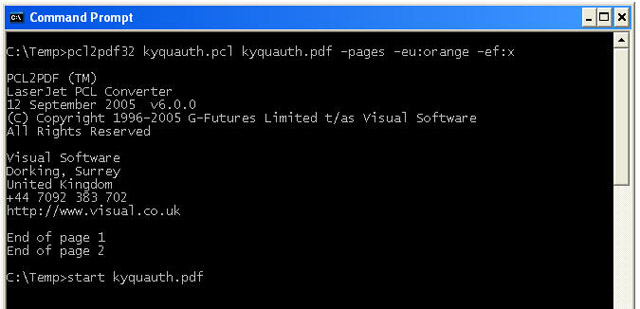 Pcl2pdf for Windows includes Windows 32 bit command line (console), DLL and ActiveX OCX conversion components. Visual PDF is available as the Windows interactive "GUI" standalone implementation.