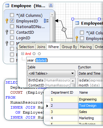 Query Builder is a brand-new solution for quick creation of queries and extended data management. It allows you to effortlessly create any complex queries, which you could not create before. The main component of Query Builder is a visual diagram where you can "draw" your query. Adding tables, creating joins, or editing conditions will be as simple as several slicks of the brush, in your case you will do this with several clicks of the mouse. You won't be confused how to analyze and process received data the best way, using Query Builder.