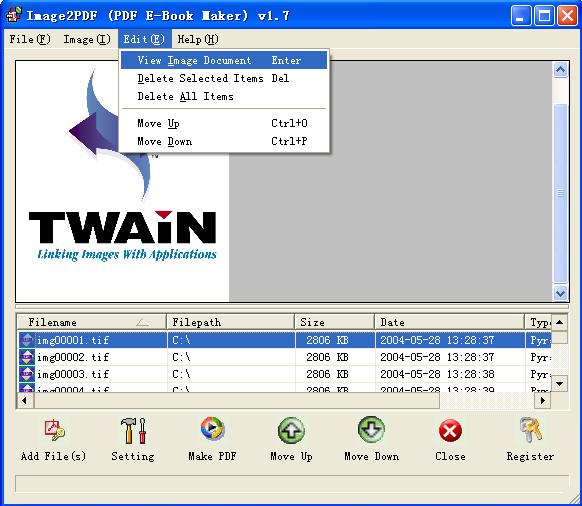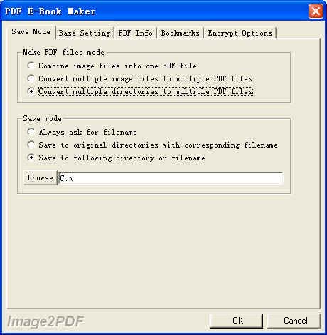 Image2PDF (Image to PDF) is a Windows application which can directly convert dozens of image formats, such as TIF, TIFF, JPG, JPEG, GIF, PNG, BMP, PSD, WMF,EMF, PCX, PIC and so on, into PDF format. Image2PDF can automatically clear and skew-correct B/W images by employing special techniques to insure high quality output after conversion. Image2PDF can operate independently of Adobe Acrobat and has faster processing speed. If your application doesn't require OCR (Optical Character Recognition) functionality, Image2PDF provides a very convenient, simple way to compose electronic books which can then be issued to the Web. You can scan paper documents directly to image files and then convert them to PDF using Image2PDF.