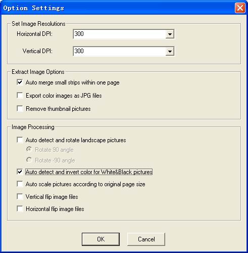 Auto detect and invert color for White&Black pictures: Some black and white pictures were inverted in the PDF file, this option will correct them automatically.